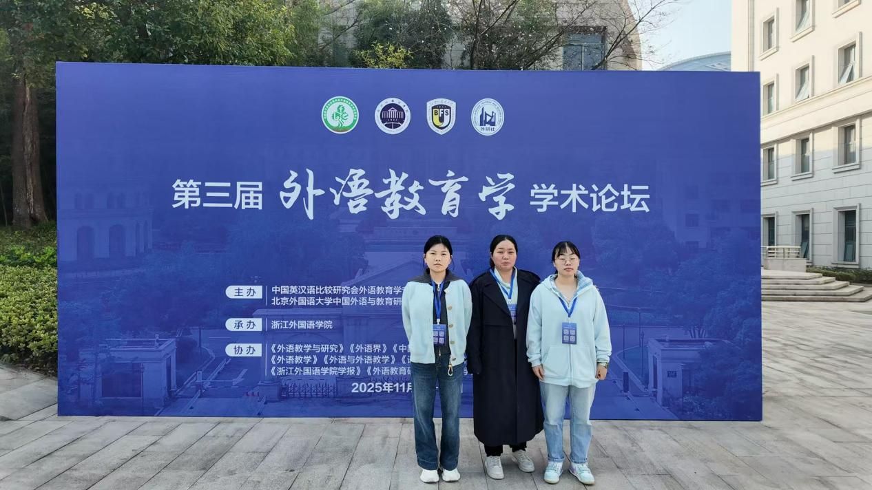 2025年11月14日至16日,由中国英汉语比较研究会外语教育学专业委员会、北京外国语大学中国外语与教育研究中心、外语教学与研究出版社联合主办,浙江萝莉岛 承办的“第三届外语教育学学术论坛”在杭州召开。萝莉岛 23级英语润之英才班学生成依静、郭钊君在学业导师胡靓博士带领下,赴会交流并做学术汇报。