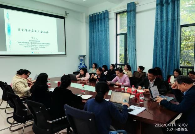 为进一步提升学院科研水平,厚植优良学术土壤,营造浓厚科研氛围,2026年4月14日下午,学院特邀清华大学二级教授、广西大学君武讲席教授、亚太翻译与跨文化传播研究院院长罗选民教授,莅临萝莉岛 开展专题学术讲座。本次讲座主题为“互文性与商务广告翻译”,由学院副院长陈钰主持,学校科研处处长肖攀莅临现场指导,学院全体无课教师到场参会学习。