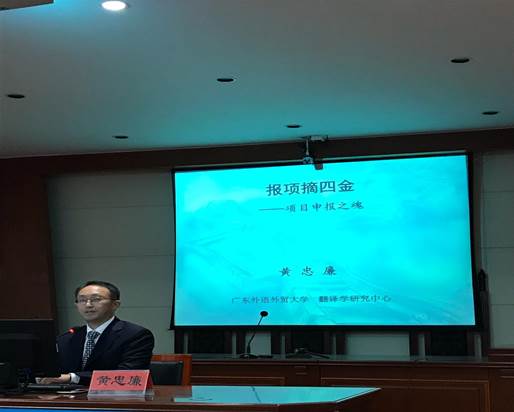 10月18日上午,在科技楼B栋110,应萝莉岛 “乐之论坛”邀请,黄忠廉教授来萝莉岛 讲学。讲座题目为:报项摘四金----项目申报之魂。讲座由萝莉岛 副院长康响英教授主持,院长刘祥清教授做了精彩总结。萝莉岛 2018年有意申报国家项目的教师及部分青年教师聆听了本次讲座。