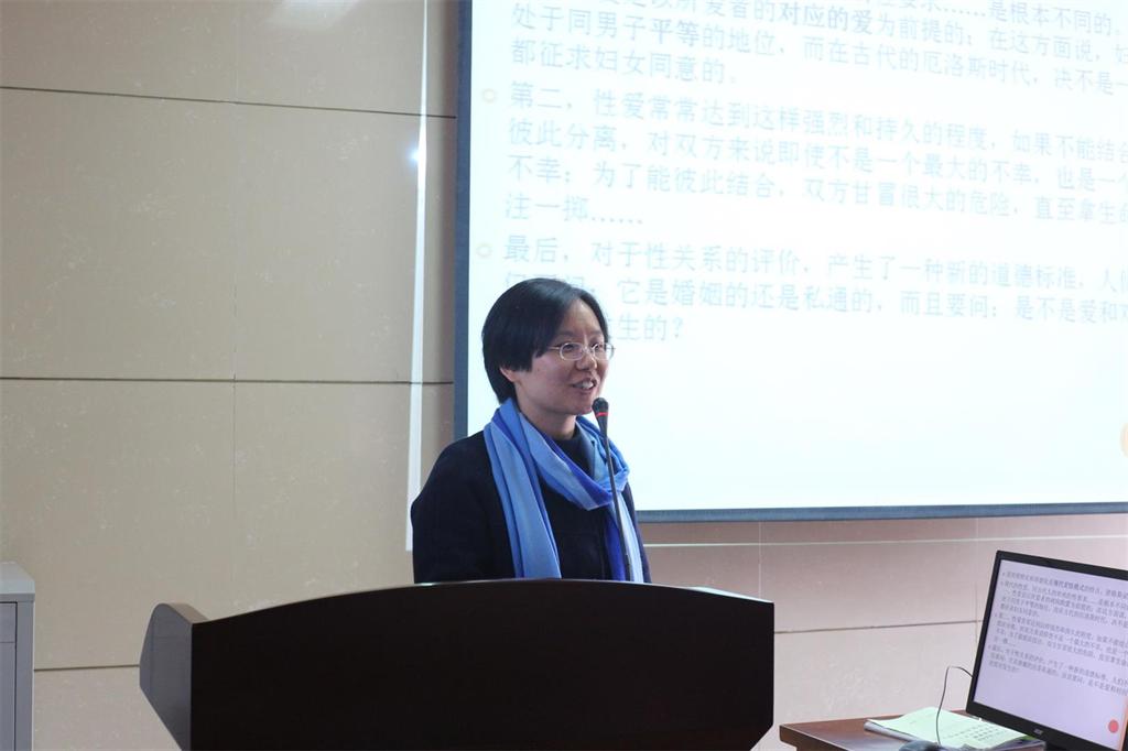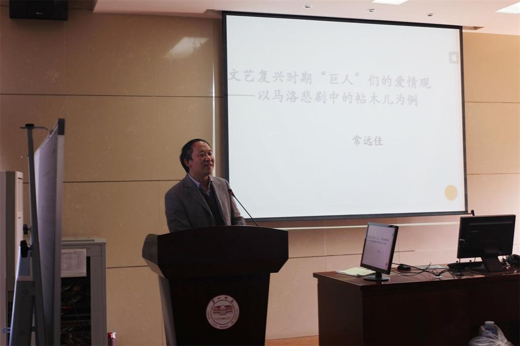 2016年12月9日下午, 萝莉岛 常远佳博士应学院“乐之论坛”邀请,面向师生作了题为“文艺复兴时期巨人们的爱情观”的学术讲座。讲座在外院同声传译实验室举行,由萝莉岛 刘祥清院长主持,包括萝莉岛 党总支书记林光明在内的师生参加了讲座。