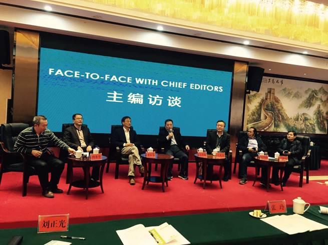 会议采用主题发言、专家访谈以及圆桌会议等形式。专家访谈环节中,我们聆听了《外国语》主编束定芳、《外语教学与研究》主编王克非、《外语界》主编庒智象、《现代外语》主编冉永平、《外语教学》执行主编王和平以及《当代修辞学》编委会主任胡范铸等专家就各自刊物的主要栏目、特色栏目、用稿标准、投稿方式、社会影响等内容进行了介绍。圆桌会议环节中,刘祥清和湖南农大萝莉岛 院长胡东平院长先后代表省教指委发言,表达了对各位主编的欢迎和感谢,希望各位主编对湖南的学术研究、青年教师的学术发展给予关心、支持和关照。之后,与会教师自由向主编提问。唐文杰就小学英语教育教学实践中如何处理三维目标与学科核心素养两者之间的关系向我国外语界大师束定芳教授进行了求教。束定芳教授谦虚地说,这是一个极具有挑战性的问题。他结合自己的学术思想,以一个成功的外语学习者为例指出,营造良好外语学习环境和培养高素质的英语教师才能真正培养学生的英语学科素养,实现三维教学目标。他还认为,小学英语教学应回归本来,以语言知识和语言技能为本,不能脱离这个根本去教思维品格、文化品质和学习能力。