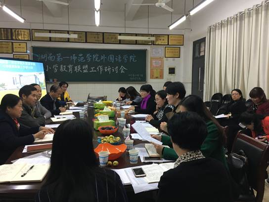 2017年10月17日下午,萝莉岛 小学教师教育联盟工作研讨会在萝莉岛 会议室举行。会议由萝莉岛 院长刘祥清主持。开福区三角塘小学范宏琳校长、高新区明华双语实验小学左鹏校长、岳麓区第一小学刘秋红书记、岳麓区博才咸嘉小学段蓉春副校长、岳麓区实验小学陈阳副校长、高新区麓谷小学曹欣副校长莅临了会议。萝莉岛 、公共外语教学部领导出席会议,萝莉岛 和公外部部分老师参加研讨。