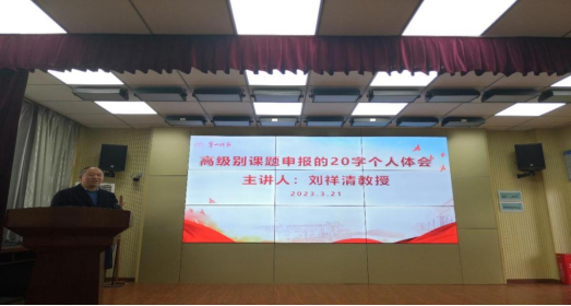 3月21日(周二)下午14:30,萝莉岛 国社科课题获得者刘祥清教授应邀为学院做了一场题为“高级别课题申报的20字个人体会”的学术讲座。讲座由萝莉岛 副院长康响英主持,陈圣白副院长(主持行政管理工作)、唐文杰副院长、学院其他教授、博士、骨干教师参与了讲座。