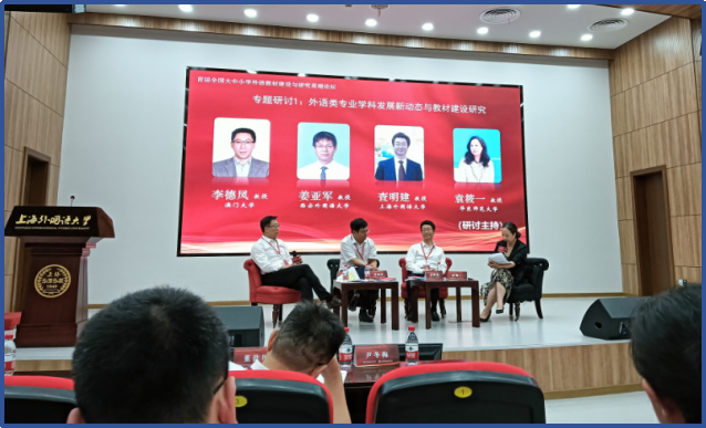 此外,来自全国其它重点外国语大学和重点师范院校教材编写与研究的知名教授、研究者们就“新课标背景下新课程新教材实施研究”“新形态外语教材建设路径研究”进行了分组探讨与交流。曾碧锋副教授和雷琬瑢博士向会议方提交了“语言规划视野下初中英语教科书中外来词汇的教学策略研究”一文,文中主要观点得到了与会专家、教授的肯定与指导。