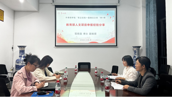 10月10日晚,应学院乐之论坛邀请,萝莉岛 范晓露博士做了教育部人文社科项目申报经验分享。本次讲座是学院“乐之论坛:星期三之夜”系列学术活动的第三期,聚焦高级别项目申报。讲座采用线上线下结合的方式,吸引了30余位老师参与,由副院长王佳娣主持。