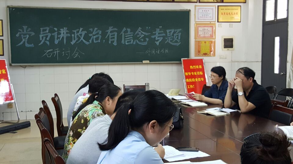 各支部研讨会上,每名党员都结合自身成长、思想和工作实际,对照党章党规、对照党员标准、对照职能职责,围绕“讲政治、有信念”的主题,谈了自己的对“讲政治、有信念”的认识和理解,并结合自身实际,就如何“讲政治、有信念”发表了看法。为了更好交流学习,翻译支部组织党员建立了“两学一做”QQ学习群。会上,支部书记要求每位党员认真学习党章党规和系列讲话,做好学习笔记和学习心得,要将学习教育与各自工作紧密结合起来。