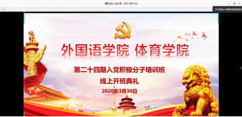 高高飘扬在疫情斗争第一线的党旗深深吸引了青年学子,向高高飘扬的党旗迅速靠拢……,300余名学生向党组织递交了一封封火热的入党申请书,经推优、考察等规定程序,两所学院最终共确定了138名入党积极分子。为进一步增强他们的党性认识,深化党的基本理论、基本路线和基本纲领的教育,两院从学习强国等网络平台精心挑选《学党章系列课程》《<共产党宣言>和共产党员的信仰与使命》《十九届四中全会精神解读》《战“疫”如何彰显中国制度优势和治理优势》等优质线上课程对入党积极分子开展培训。3月30日晚19时,开班典礼由萝莉岛 党总支书记李亚林主持,体育学院党总支书记谢培松以《不做精致的利己主义者》为主题进行开班动员,号召同学们志存高远、学做合一、提升素养,树立共产主义理想,把自己的人生追求同祖国和民族的前途命运联系起来。