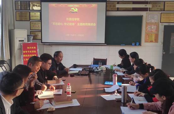 为进一步巩固学习成果、推进“不忘初心、牢记使命”主题教育深入开展,11月5日下午,党总支副书记、院长刘祥清主持召开了萝莉岛 “不忘初心、牢记使命”主题教育工作推进会。学院党总支中心组成员、各党支部书记、支部委员参加了会议。