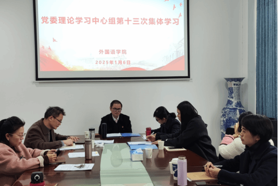 2025年1月7日下午,学院党委理论学习中心组在百熙楼223开展第十三次集体(扩大)学习。院党委委员、党支部书记、系(室)主任参加学习。党委书记何培森主持学习并讲话。
