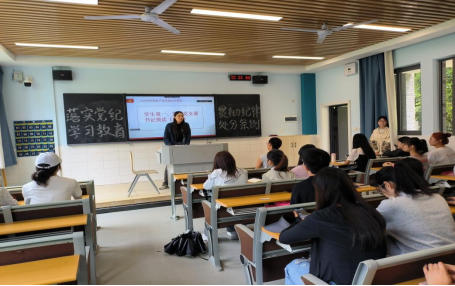 老师领读过后,两位党员同志分享交流了关于本次活动的学习体会。21级876英语班周晓芳同志表示,在未来的学习和工作中,会准确把握《条例》的精神实质,严于律己,时刻绷紧纪律规矩这根弦,以强烈的责任担当推动各项工作落实落细,以实际行动践行党的宗旨和理念。21级874英语班孙啦同志表示,她会把《条例》的学习成果转化为实际行动,做到知行合一,无论在思想上还是行动上都严守纪律底线,展现新时代学生党员的良好风貌,以饱满的热情和坚定的信念,为推进党的建设新的伟大工程贡献青春力量。