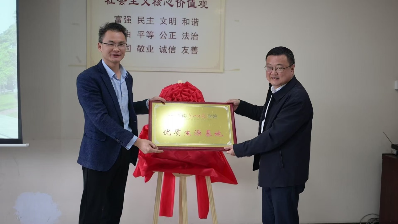 最后,戴建宇受学校委托向岳阳市第十三中学授予“优质生源基地”牌匾。