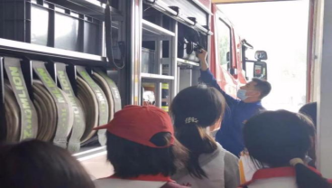 上午十点,志愿者们乘车到来,消防大队的教官热情接待志愿者们,并带领大家参观消防车,耐心讲解消防车内设施,讲述消防车内设备的名称及功能。志愿者们认真听讲,并积极上车体验。