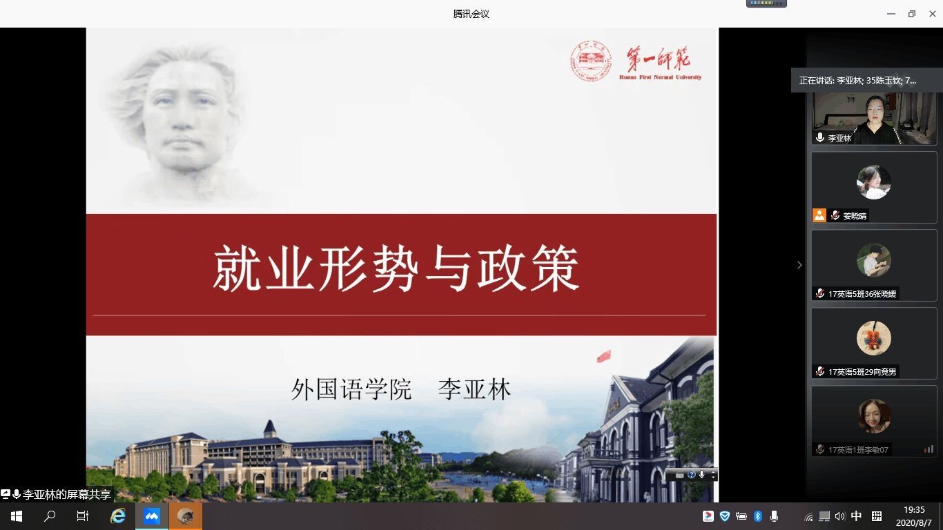 在就业形势和政策课上,李亚林书记分析了今年就业形势严峻的四大因素,解读了国家促进大学毕业生就业及加强乡村教师队伍建设有关政策措施,介绍了学校、学院在疫情背景下为2020届毕业生开展的各类就业帮扶举措,并从信息准备、知识准备、能力准备三个方面指导同学们做好求职准备。