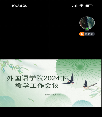 9月4日19:30,萝莉岛 通过腾讯会议召开期初教学工作会议,全面部署新学期各项工作,确保教学秩序井然、工作高效推进。副院长陈艳君,副院长王佳娣,系室主任,督导,教科办老师参会,会议由陈艳君主持。