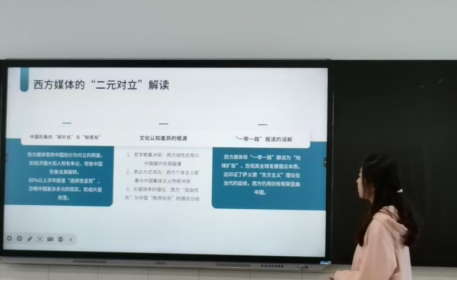活动伊始,主持人以“翻译如何弥合文明认知鸿沟”为引,点明本次分享会的核心目标——理解翻译的重要性、掌握实用技巧并激发实践行动。在共读书目深度分享环节,六位组长带领组员围绕《翻译与社会》《文学与翻译》《怎样对外介绍中国》等书籍展开特色发言。杨锋小组通过案例对比,揭示翻译对社会意识形态的隐性塑造;杨紫凤则结合文学译本中的“创造性叛逆”,探讨译者如何成为文化的二次创作者;刘佳睿则从《英汉对比研究》出发,提出“翻译应成为文化基因的激活者,而非符号的搬运工”,呼应了活动主旨——在技术狂潮中坚守翻译的人文价值;廖扬慧与王晓宇以《怎样对外介绍中国》为蓝本,现场演示了跨文化传播中的翻译策略调整,引发热烈讨论。