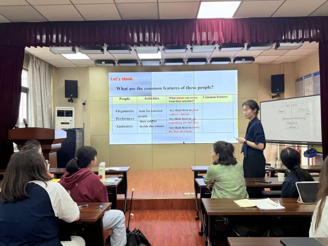 本次活动旨在提升英语师范生的专业素养与教学实践能力,为核心素养导向下的未来英语教学注入新动能。活动主要围绕三大环节展开:师范生教学展示与名师精准点评、讲座指导和互动答疑。首先,两位师范技能参赛选手何若欣和佘嘉威进行了教学片段展示。陈老师对两位参赛选手的表现给予了充分肯定,同时从教学环节的逻辑性、课堂互动的有效性、板书设计的艺术性以及教学评一致性的落实等多个维度,进行了细致入微、切中肯綮的点评与指导。随后,陈琼宇老师结合自己多年的教学与研究经验,针对教学展示案例,做了题为“以终为始,活动为径:基于英语学习活动观的教学目标设计与实现”的讲座,现场指导同学们如何深度解读教材、如何挖掘文本内涵,如何进行科学、有效的教学设计。她强调,优秀的教学设计应源于对语篇的精准把握和对学情的深入了解,要善于将语言知识传授与核心素养培养有机融合。陈老师的分享高屋建瓴又紧贴地气,为同学们未来的备课与教学实践指明了方向。最后,在互动环节,同学们踊跃发言,就自己在理论学习与微格教学实践中遇到的困惑向陈老师请教。陈老师耐心倾听,逐一给予了细致而富有启发性的解答。其严谨的治学态度和倾囊相授的师长风范,深深感染了在场的每一位师生。