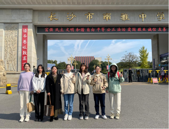为落实践行萝莉岛 “名师助长,优才优育”培养原则,切实提升师范生教学技能素养,2023年11月22日,萝莉岛 22、23两个年级卓越班6名学生在22级班主任胡靓博士的带领下,赴长沙市南雅中学参加邓曙光英语名师工作室展示活动。