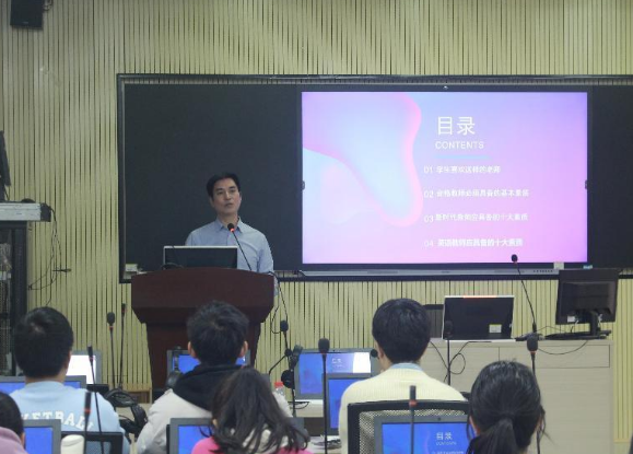 陈文锋向同学们发出"为什么选择当老师?"与"老师是职业还是事业?"两问,对此他从三个方面进行阐述:第一,他指出学生们喜欢的老师慈爱而严厉、亲切又风趣,善以身作则、有真才实学;第二,合格教师应备心怀理想、革故鼎新、热爱学习、与生为友、不怕失败、实事求是的基本素质;第三,新时代教师更应有身心健康、忠于教育、育人为本、学高身正、一专多能等基本素质。
