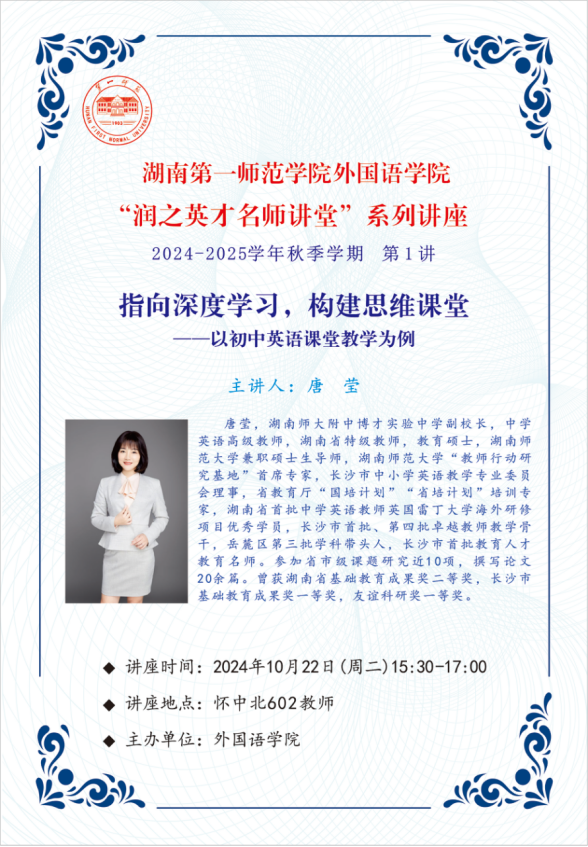 讲座预告|指向深度学习,构建思维课堂——以初中英语课堂教学为例