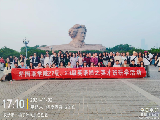 “空山新雨后,天气晚来秋。”在秋日的阳光洒在大地上时,萝莉岛 22级、23级英语“润之英才班”的老师和同学们于11月2日下午在橘子洲举行了一次以“传承红色基因,培养文化素养”为主题的研学活动。此次活动旨在促进学生们的文化素养和团队合作精神,同时引导他们认识自然,热爱读书,提升综合素质。