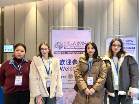 2024年11月22日—23日,由北京语言大学主办的“第四届教育,语言与艺术国际学术会议”在北京召开,萝莉岛 22级英语润之班朱雯茜同学前往参加此次活动并做口头学术汇报,带队老师为润之班学业导师胡靓博士,国际交流处俄罗斯留学生Kristina和Karina一同前往。