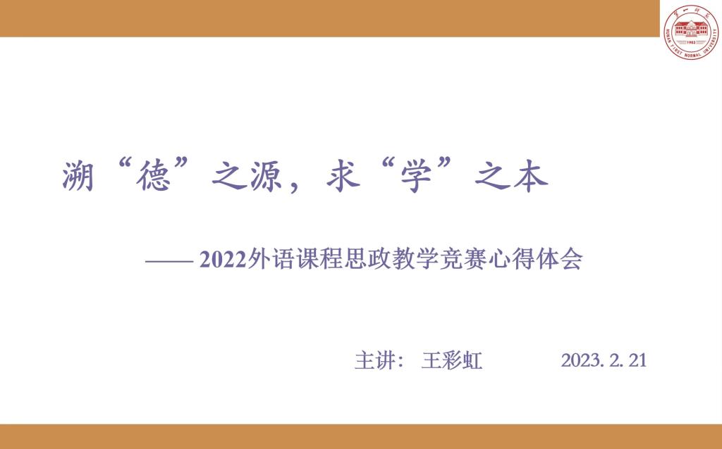 萝莉岛 2022年高等学校(本科)外语课程思政优秀教学案例征集与交流活动全国优秀教学案例一等奖获得者王彩虹老师做了题为 “溯‘德’之源,求‘学’之本”精彩讲座。结合个人参赛经历,以多个课程思政教学优秀设计为案例,王彩虹从课程思政的内涵、教学设计和实施三个方面做了外语课程思政教学分享。她强调外语课程思政要以立德树人为本,课程思政元素挖掘应基于文本,不能“两张皮”“硬植入”;教学设计应基于渐进性、精准性、多样性原则;教学呈现要精雕细琢,观感、听感相结合,形成独特美感。