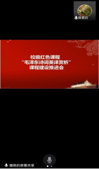 2022年7月31日晚20点至21点,萝莉岛 /公共外语教学部《毛泽东诗词英译赏析》课程团队召开线上会议,就红色课程建设进行研讨。陈圣白副院长(主持工作)及课程团队所有成员参会,会议由魏艳主持。